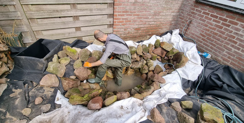 Hieronder wat foto's van een schildpadden vijver met natuurlijke skimmer en plantenfilter. Zoals op de foto's te zien kom je nog al eens wat dingen tegen in de grond. Maar uiteindelijk is overal een oplossing voor!